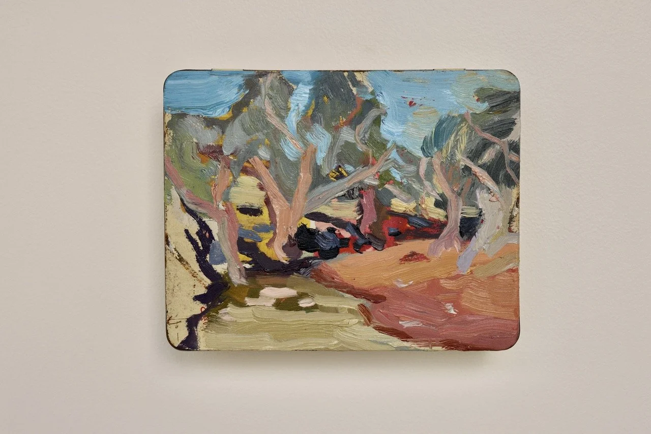 Nicole Kelly, Water Hole, 8 x 5 x 1.5 inches, oil on antique tin, 2024